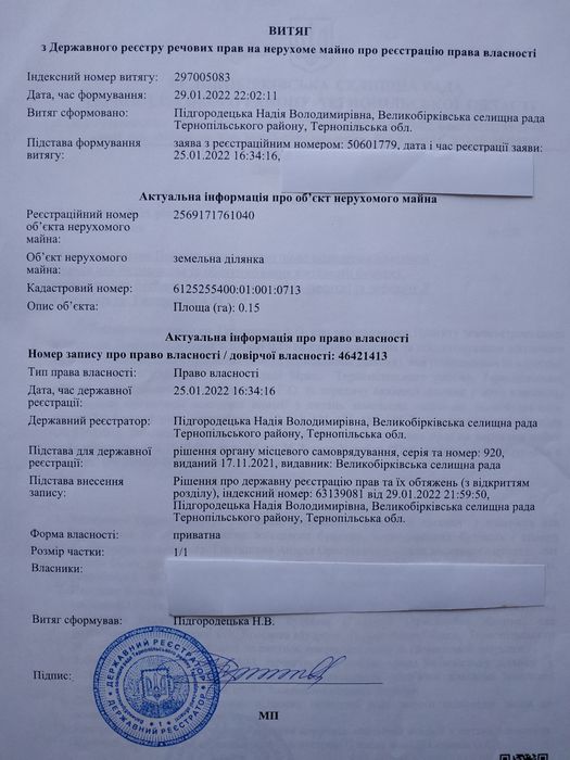 продам землю Тернопільська область Тернопільський район смт Великі Бірки