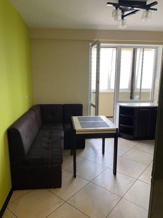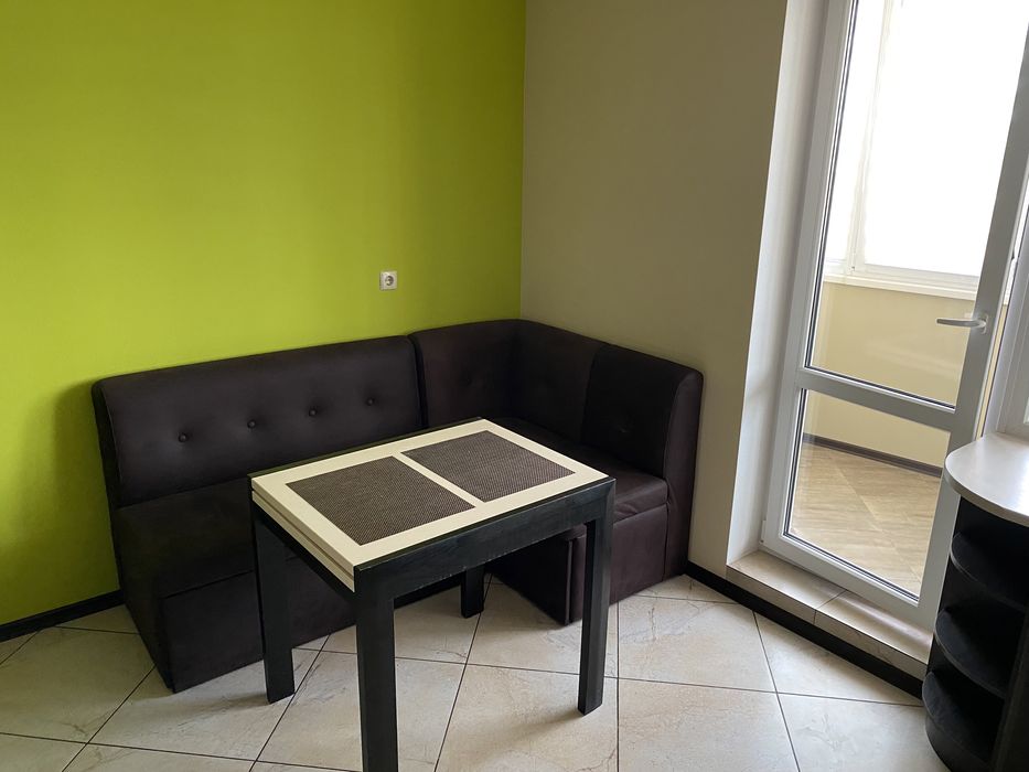 На кухні розкладний мʼякий куток зі спальним місцем, а також розкладний стіл.