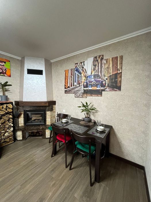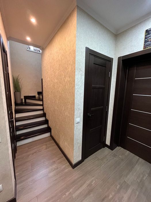 Планування: Простора кухня-вітальня з каміном і виходом на терасу, технічна кімната з котлом та екософт системою, кабінет або гостьова кімнати, санвузол, на другому поверсі 3 кімнати, другий санвузол з ванною-джакузі, кладова. Є також вихід на третій поверх де при бажанні можна зробити ще одну додаткову кімнату.