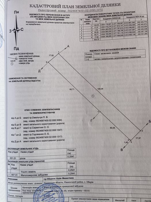 Продам земельну ділянку в с. Обарів; Земельна ділянка під забудову в с. Обарів, ділянка знаходиться 1 км від м. Рівне, (луцьке кільце), 0.25 га. Є варіант поділу на дві ділянки