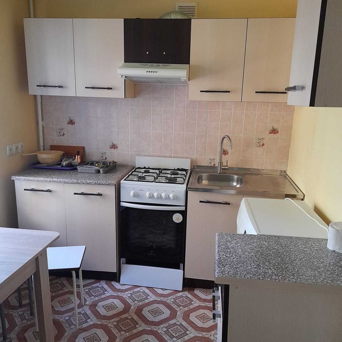Квартира має оновлене планування (кухня-студія + спальня), ремонт та всю базову техніку потрібну для проживання.