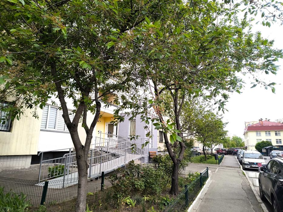 Дом с ОСББ. Придомовая территория ухожена и огорожена, вокруг много зелени, на входе в подъезд имеется пандус.
