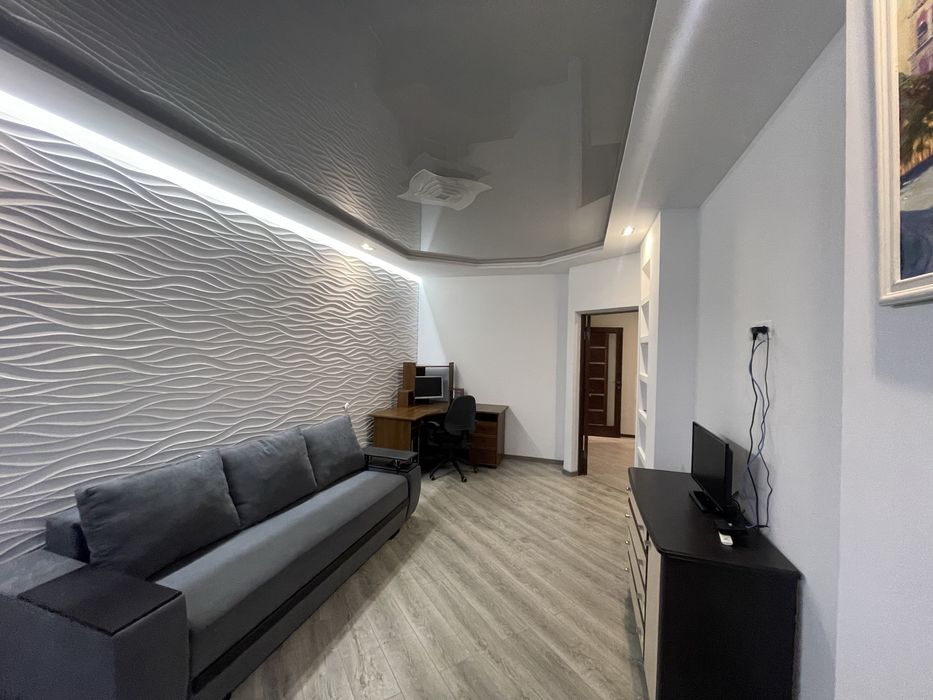 Хороший сучасний ремонт з усіма меблями, технікою в новобудові на початку Рясне 2(Еко дім). Сучасний дизайнерський ремонт (робиллося для себе з якісних матеріалів). Квартира внутрішня (зимою дуже тепла), зі всіх сторін живуть сусіди. Є електричний (кухня з цифровим датчиком) та частковий водяний ( при вході для сушіння взуття) підігрів підлоги. Двохконтурний котел-колонка. Рушникосушка у ванній двохфункціональна. Освітлення з енергозберігаючими лампочками, лед підсвітки стін, в кімнаті світильник на пульт. Електрика з дифавтоматами, що забезпечить безпеку в ванній. Нова величезна шафа в коридорі, кухня, диван, комод, комп‘ютернмй стіл, крісла та інше… Інтернет (є вай-фай роутер). Усі лічильники: електролічильник двохзонний. Будинок повністю облагороджений - на подвір‘ї є дитячий майданчик, велика парковка навколо будинку. Новобудова обладнана по колу відеокамерами, а також на сходовій клітці, є нічний охоронець. Відразу за будинком зупинка де курсують автобуси в майже усі мікрорайони Львова, АТБ та інші потрібні магазини. Все що потрібно для повноцінного проживання: школа, садочок, спортивний майданчик, футбольне поле. Вікно великі в кухні ( з покриттям селар - не нагрівається літом) та кімнаті виходять на зелену зону з хорошим краєвидом, на схід сонця. Дзвоніть - в живу квартира та район складає приємне враження 09******79