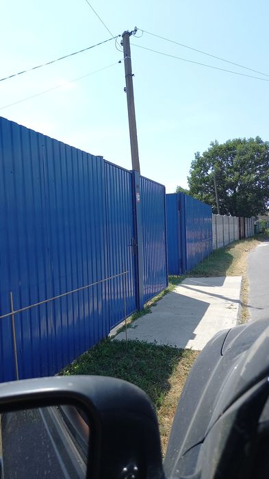 Паркан з металопрофілю 24, 5 метрів від вулиці, ворота підійдуть як для легкового авто, так і для камазу, самосвалу. Є вивід води на вулицю для поливу городу, шланг 50м для поливу на металевій мотушці з колесами.