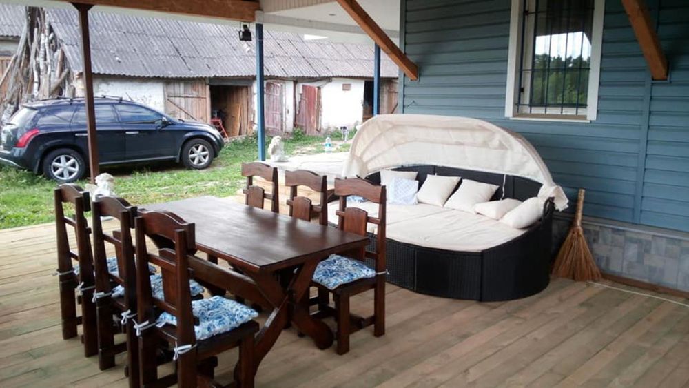 Горище заповнене сіном, є дрова. Вуличний дерев'яний туалет.