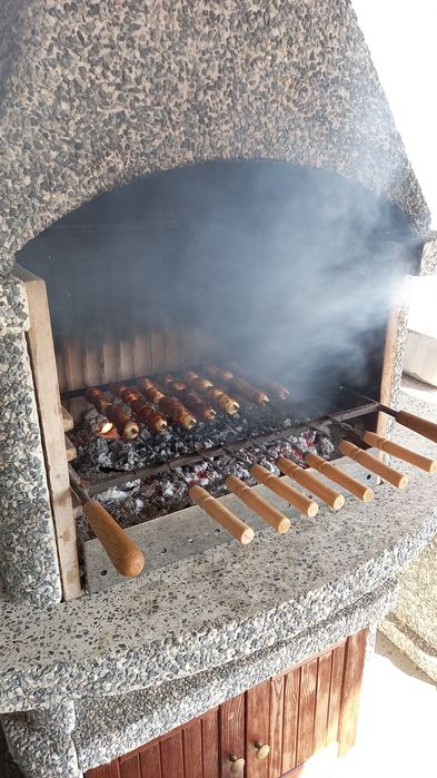 Величезна кам'яна кухня: тумби, мийка, мангальна піч.