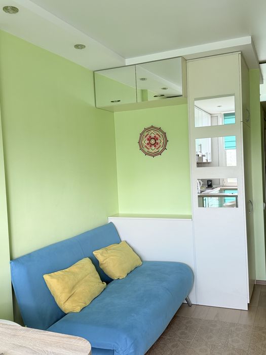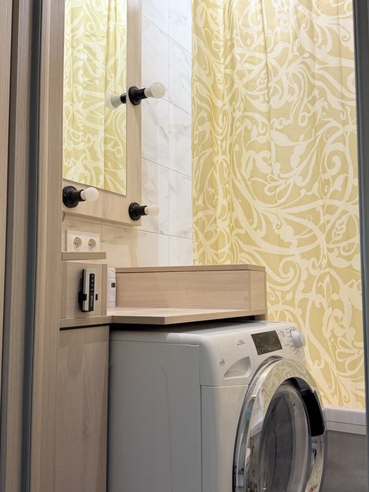 Здається затишна, світла квартира-студія, в якій відчувається любов і турбота — ремонт робився для себе, із якісних матеріалів і техніки преміум-класу.