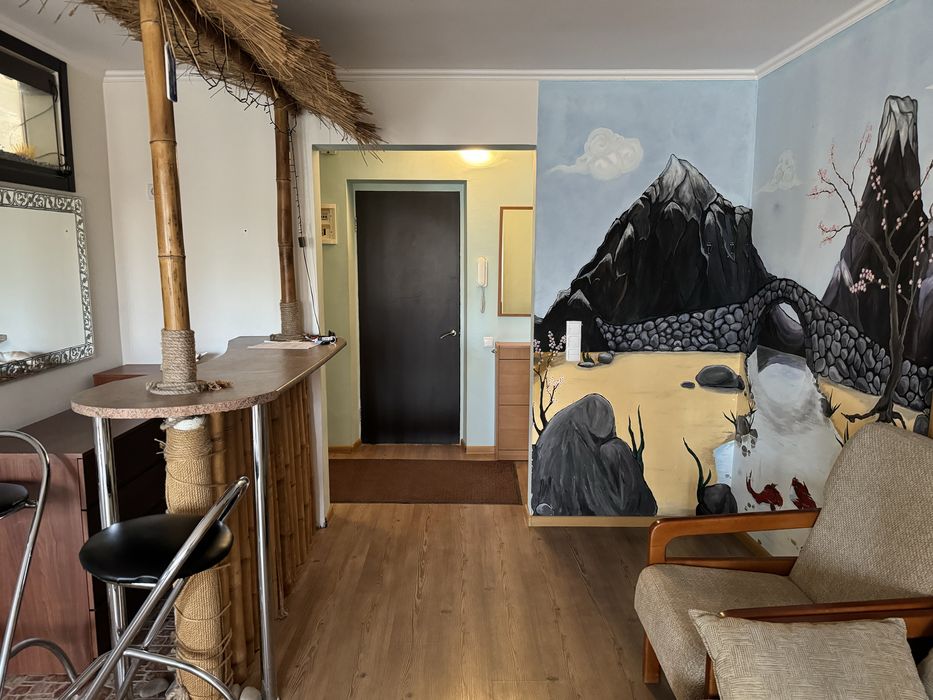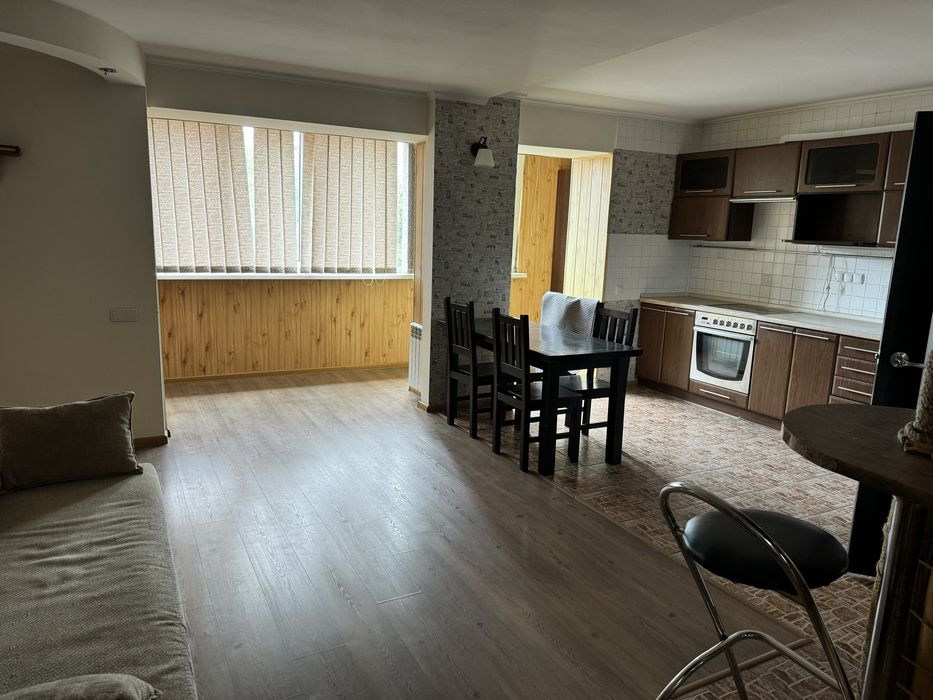 Мебльована , побутова техніка в наявності. Загальна площа 70 кВ . Квартира студія.