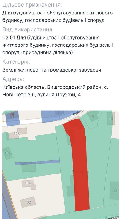 | Земельна ділянка: |