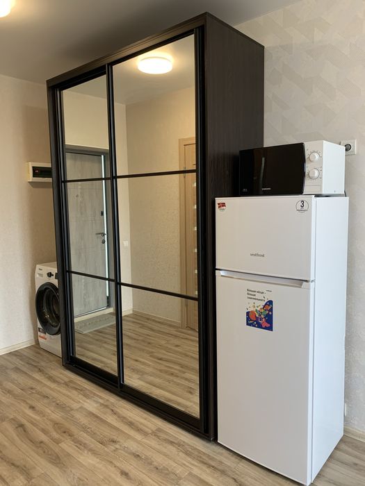 Побутова техніка:пральна машинка,телевізор,холодильник,роутер,мікрохвильова піч,електро чайник,варочна поверхня,інверторний кондиціонер(який може працювати як на охолодження так і на обігрів до -8 гр.,),бойлер,електрична рушникосушка.