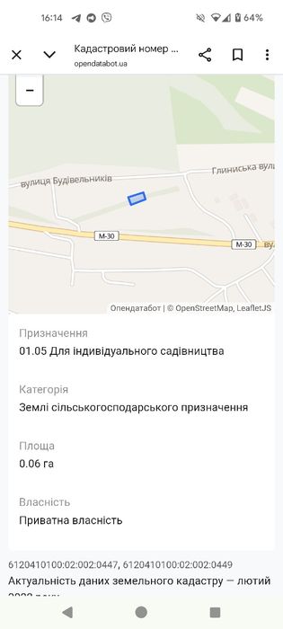 | Земельна ділянка: |