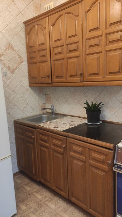 Балкон засклений зі світлом, обшитий натуральним деревом. Вікна пластикові. Кухня - кафель на стінах, косметичний ремонт, місткі дерев'яні шафи, плита газ з духовкою, холодильник. Коридор - косметичний ремонт, містка шафа для верхнього одягу. Ванна кімната - бойлер новий, пральна машина, ванна вся в кафелі.