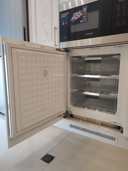 6. Великий холодильник на 400 літрів. Додатково вбудована в кухню морозильна камера на 200 літрів.