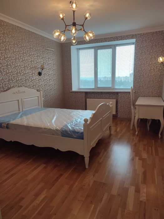 12. Ліжко в спальній-кімнаті з масиву ясена. Новий ортопедичний матрац. Стіл та стільчик з масиву ясеня. В квартирі залишається все як на фото. Ніхто не проживав.