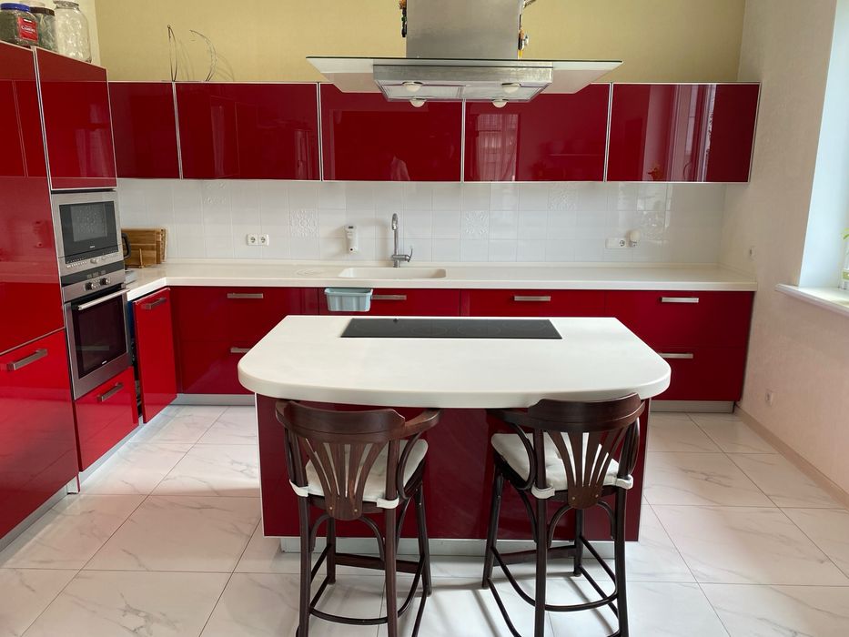 Кухня с островной частью. Варочная поверхность, духовка, микроволновка, посудомоечная - Siemens, холодильник - Sharp. Все комнаты меблированы.
