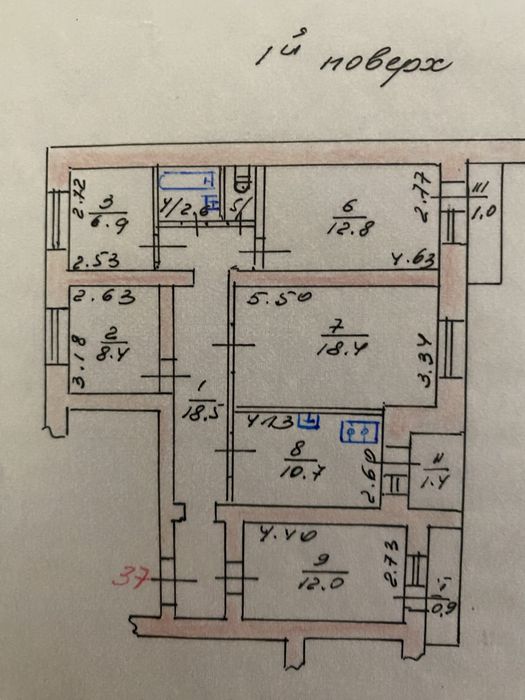 Пʼяти кімнатна квартира на першому поверсі; Квартира для офісу чи великої сімʼї, зручне розташування.