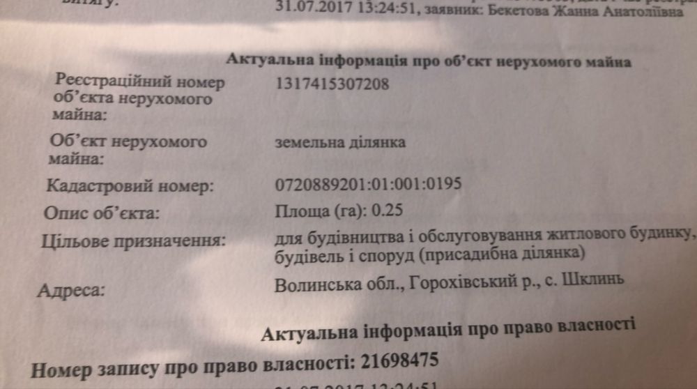| Земельна ділянка: |