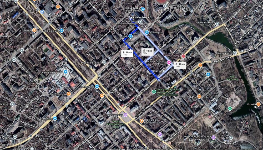 До парку Богдана Хмельницького 10 хв. теж пішки.