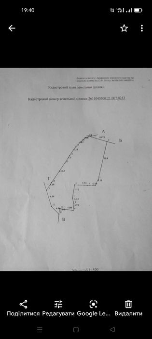 -площа 0.0786га(кадастровий номер 2611040300:21:007:0243)