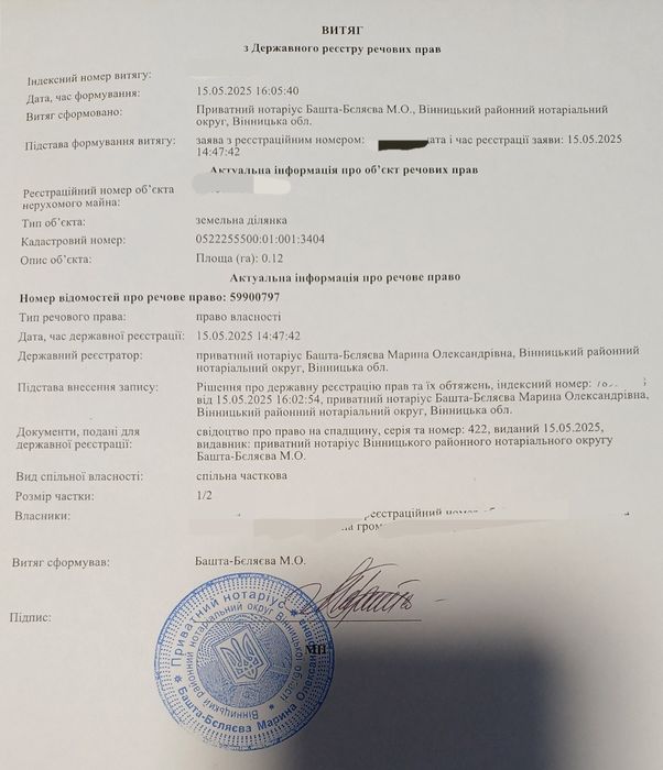 | Земельна ділянка: |