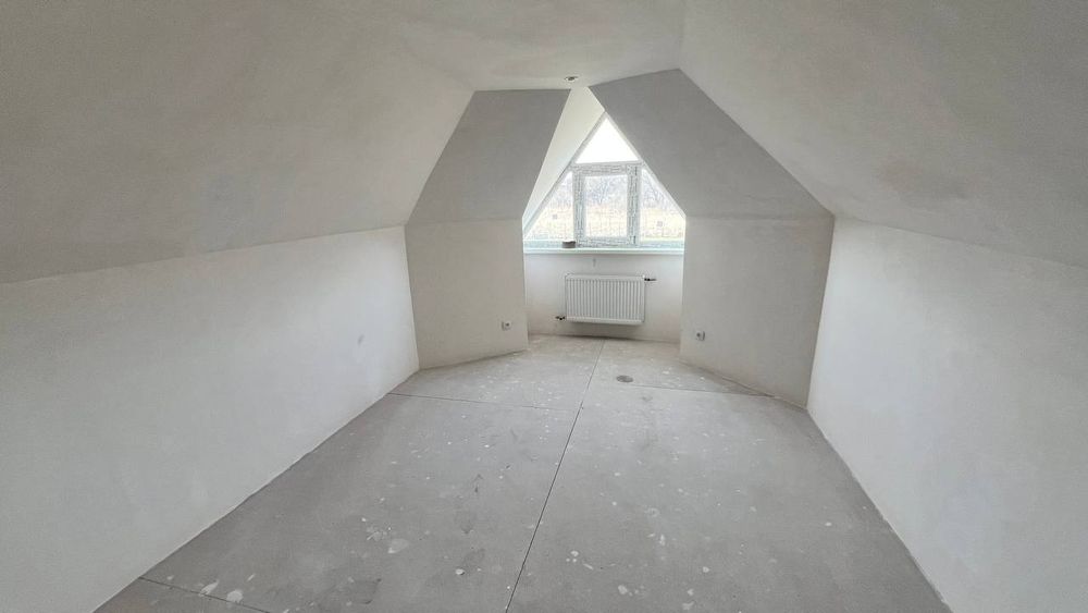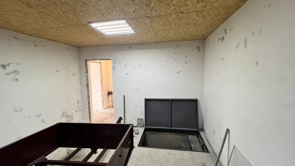 Первый этаж - 2 комнаты, кухня - студия, санузел ( раздельный), гараж, подсобное помещение.