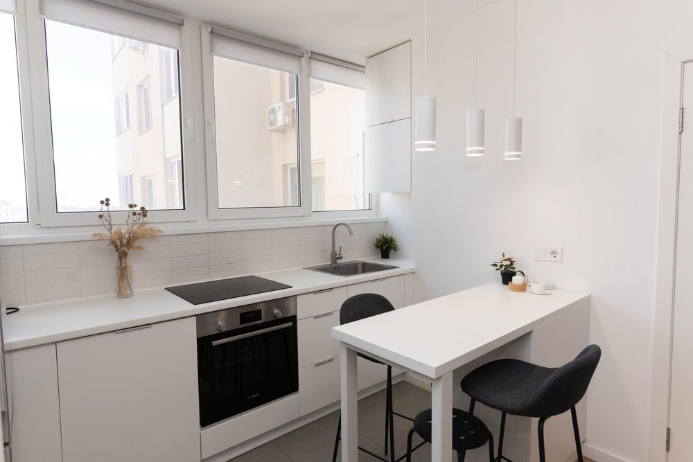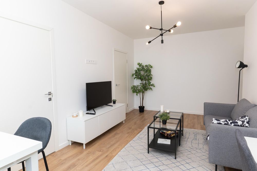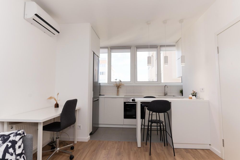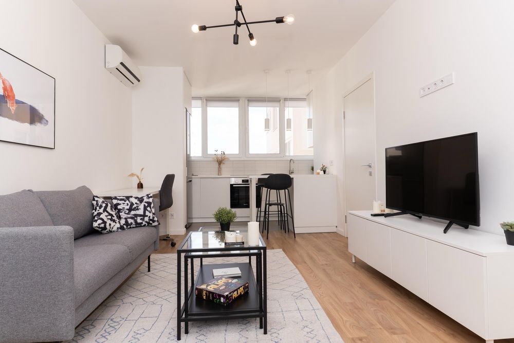 Вбудована кухня, плита, холодильник, компактна посудомийна машина, мікрохвильова піч, електроплита, телевізор, пральна машина, бойлер, кондиціонер, робоче місце.
