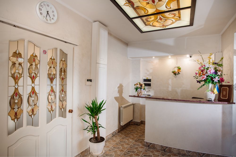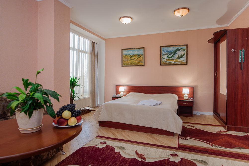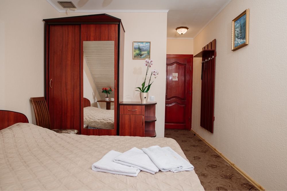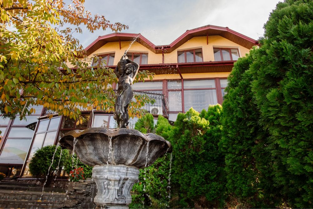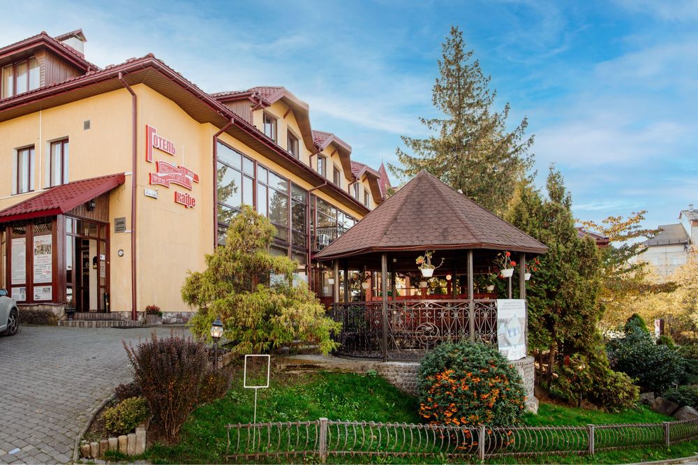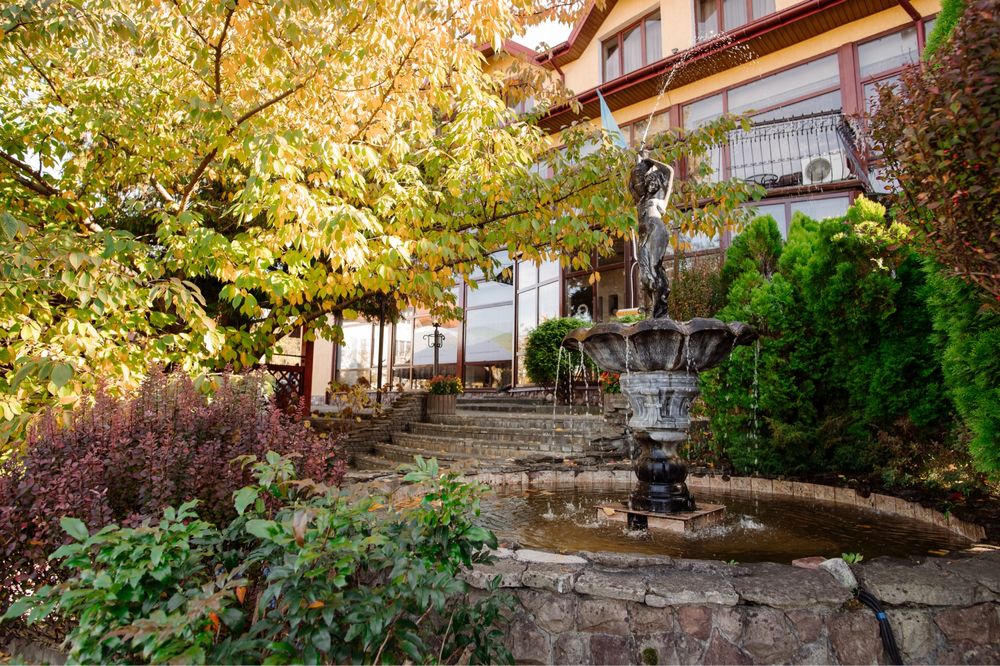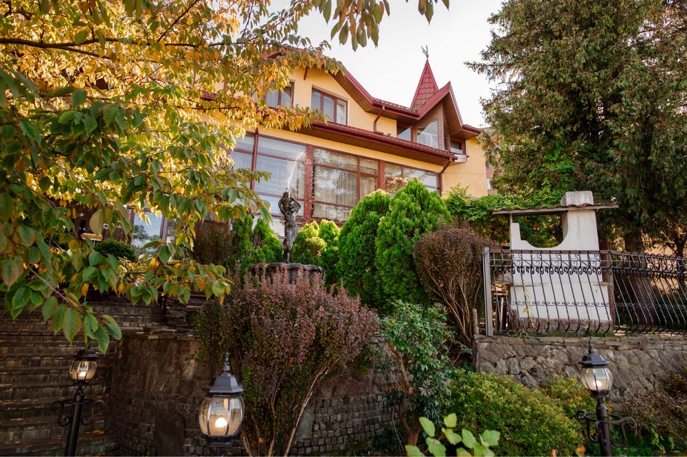 Продається готель в центрі Трускавця з землею; Діючий готель, три поверхи, тисяча квадратних метрів, земельна ділянка у приватній власності все справне, на першому поверсі кафе, двадцять шість номерів, влансна газова котельня і котельня на дрова, сауна, ванна для підводного душ масажу, масажний кабінет. В кожному номері кондиціонери, холодильники, телевізори, санвузли з душовими кабінами та ваннами. Кабельне телебачення, вай фай, відеонагляд
