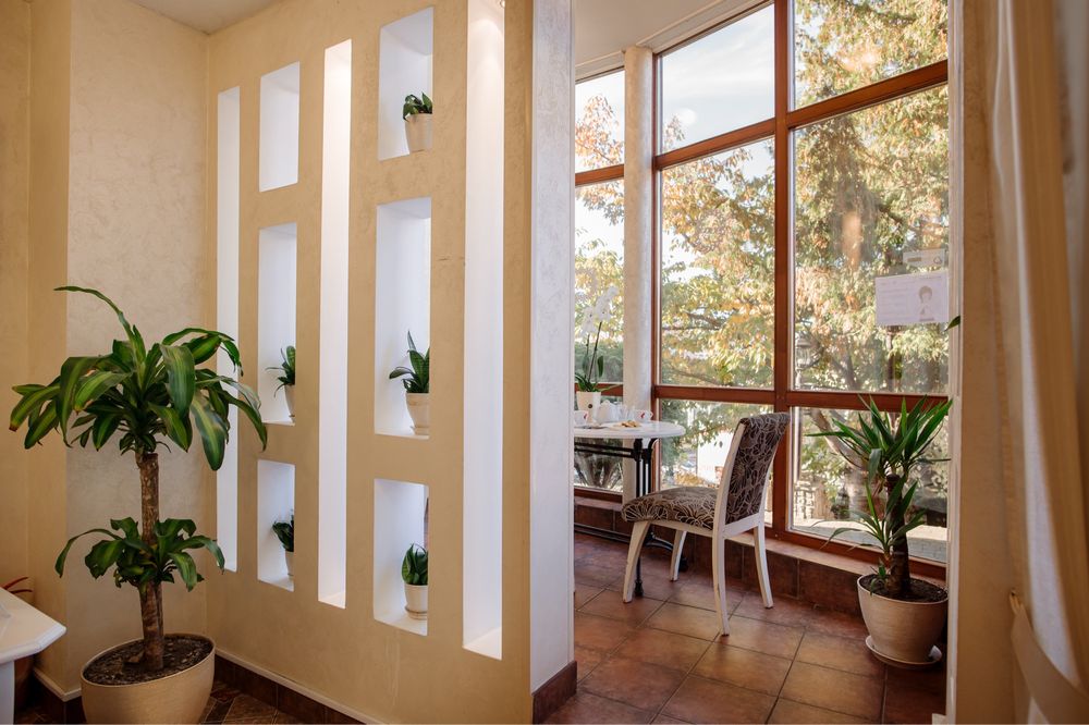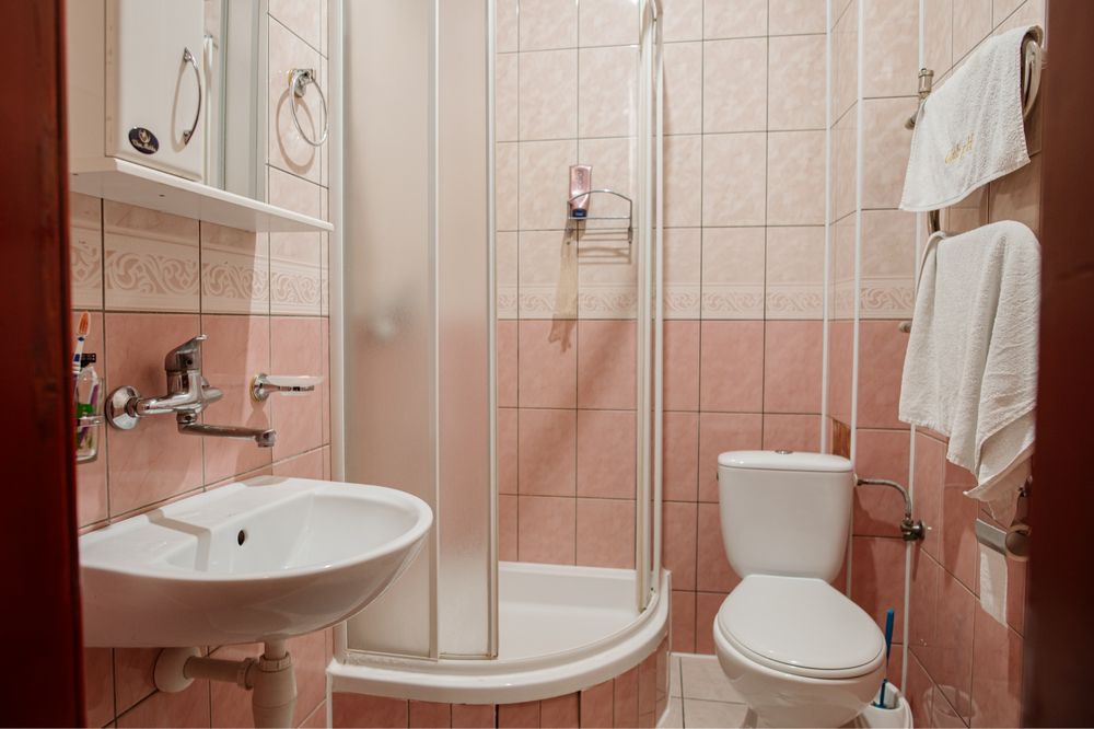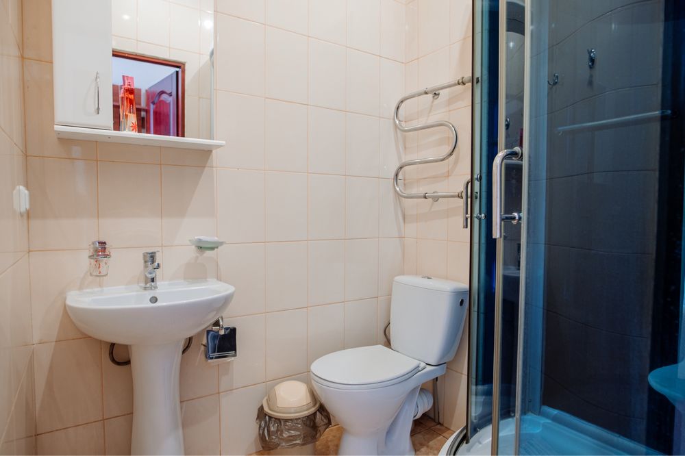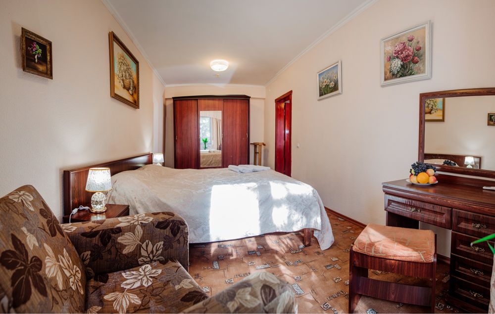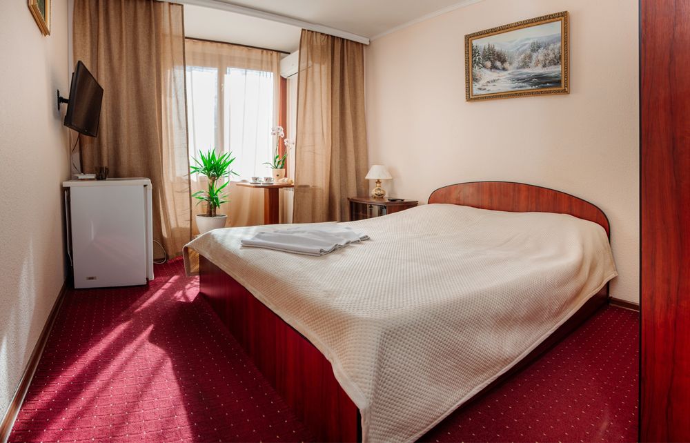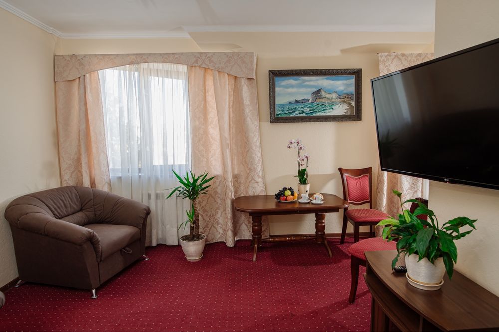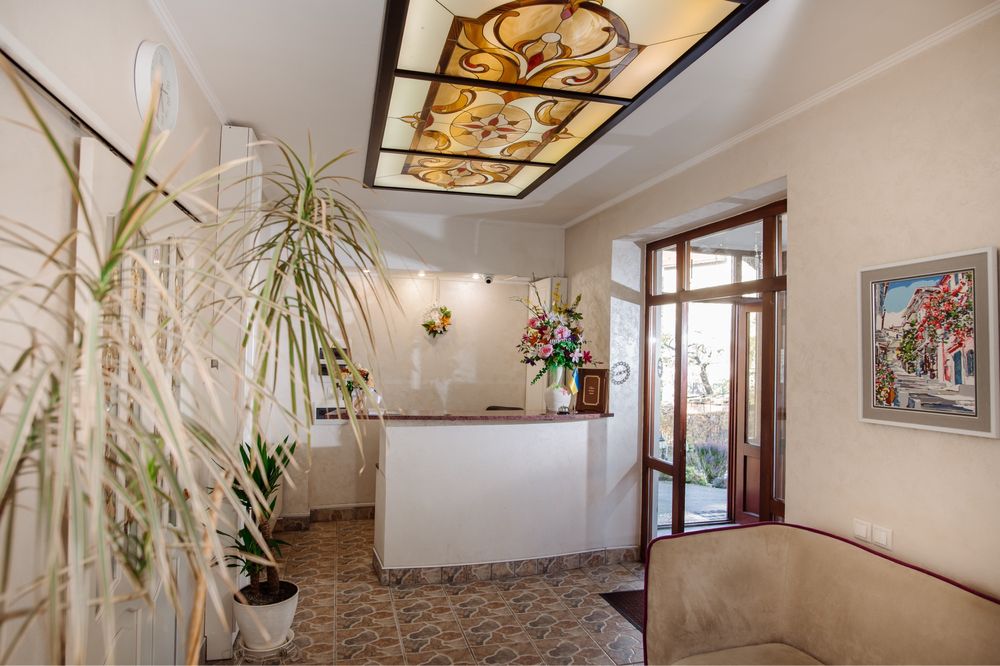 Продається готель в центрі Трускавця з землею; Діючий готель, три поверхи, тисяча квадратних метрів, земельна ділянка у приватній власності все справне, на першому поверсі кафе, двадцять шість номерів, влансна газова котельня і котельня на дрова, сауна, ванна для підводного душ масажу, масажний кабінет. В кожному номері кондиціонери, холодильники, телевізори, санвузли з душовими кабінами та ваннами. Кабельне телебачення, вай фай, відеонагляд
