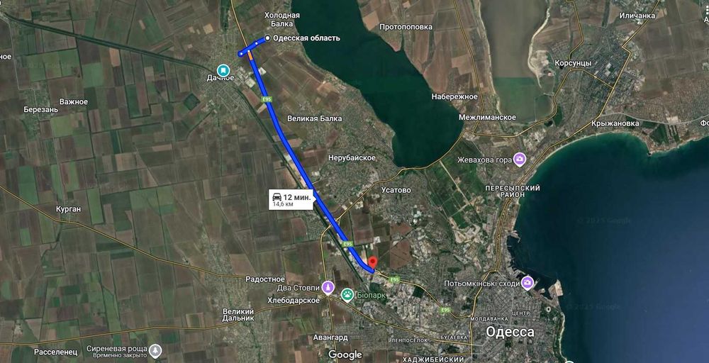 Відстань від в’їзду в село Холодна Балка до в’їзду в місто Одесу - 14,6 км (12 хвилин автомобілем).