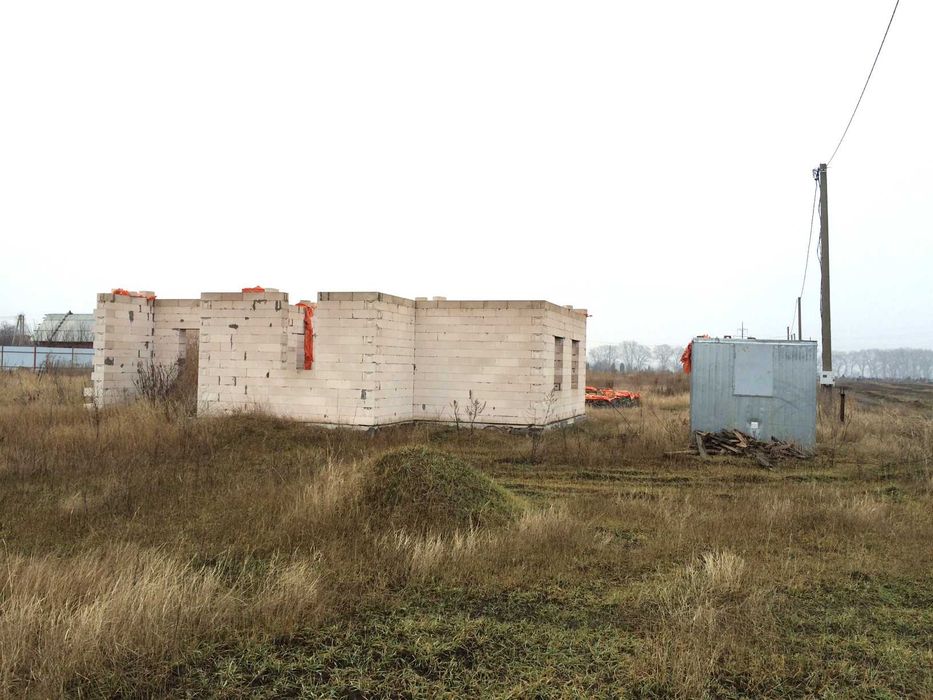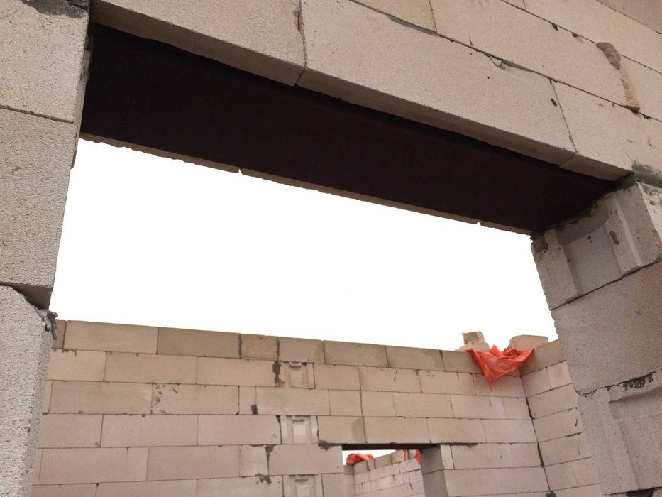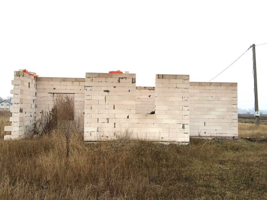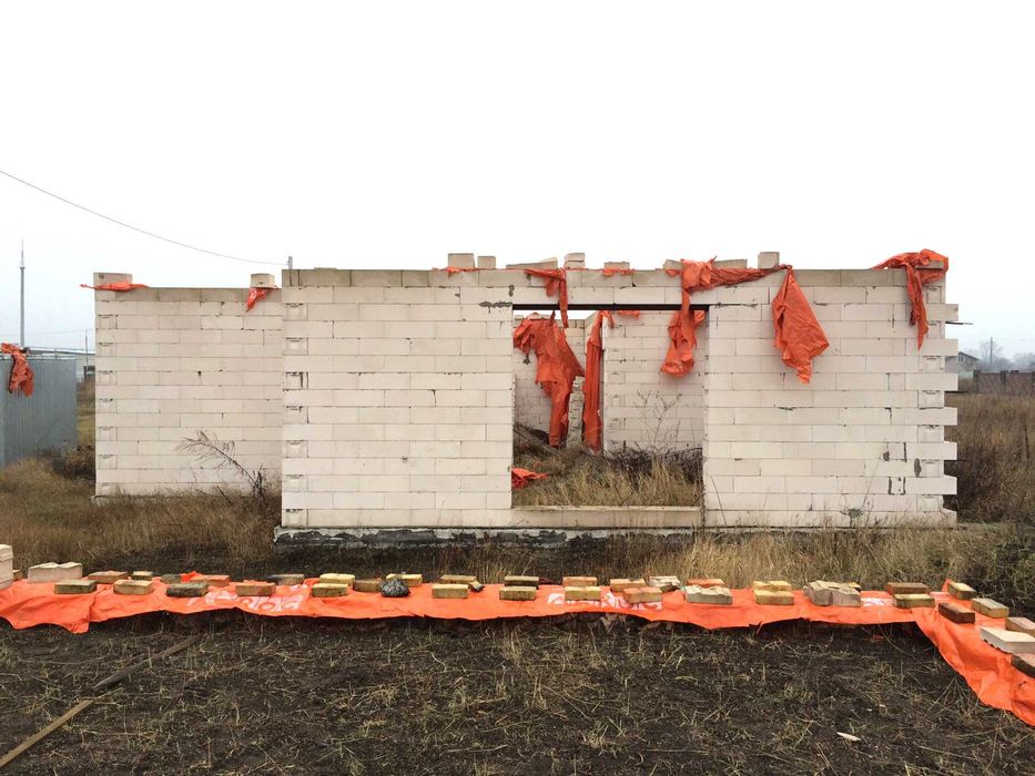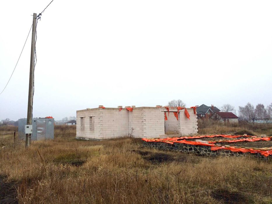 Зведений перший поверх одного з двоповерхових будинків. Матеріал: газоблок AEROC паз-гребінь, з посиленим армопоясом на кожному четвертому ряду.