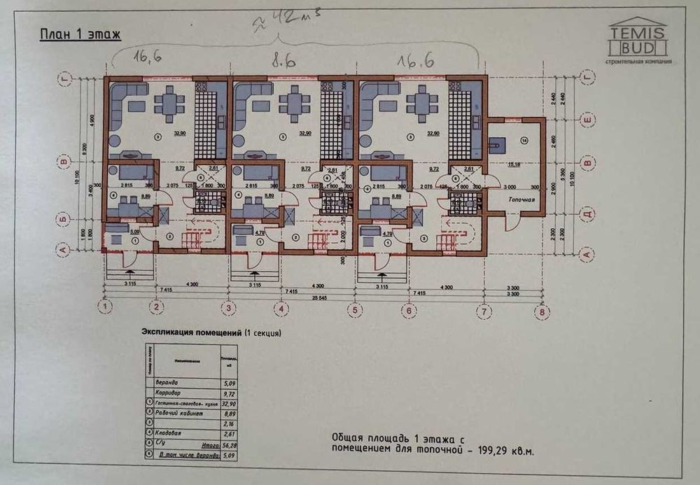 Архітектурний (дизайнерський) план будинку типу «таунхаус» із можливістю перепланування.
