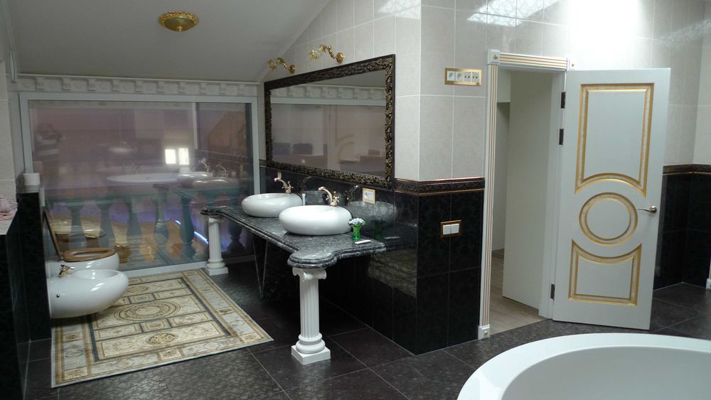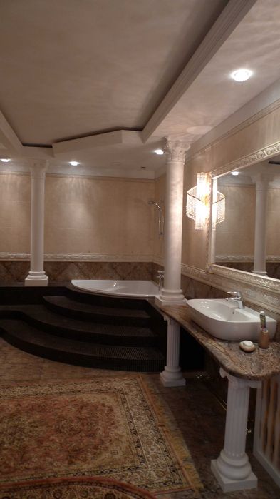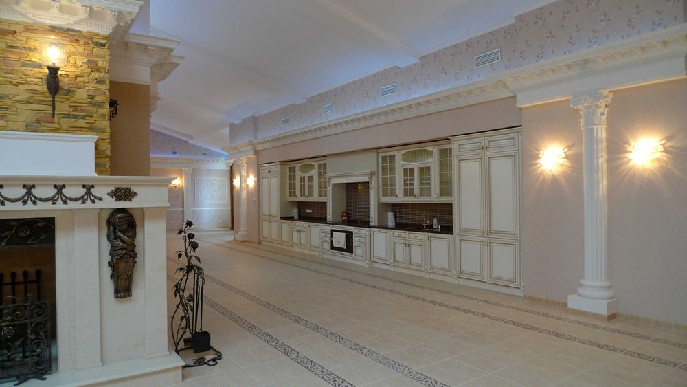 Квартира повністю мебльована та готова до проживання: якісна сантехніка, плитка, шафи-купе, гардеробні, санвузлы, кабінет в два поверхи, будуарна, камін.