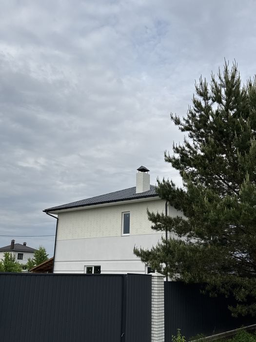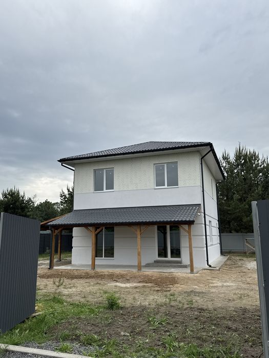 Продається сучасний двоповерховий будинок з терасою в селі Бобриця, Київська область (біля Білогородки), зручний виїзд на Житомирську трасу, 20–30 хвилин до Києва.