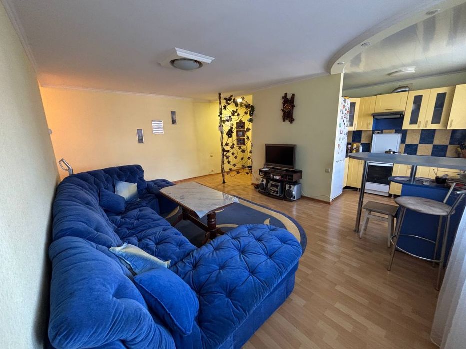 4/5 , загальна площа 55,5 кв.м. Квартира внутрішня , дуже тепла , індивідуальне електро опалення, кондиціонер , відеонагляд , перепланована в студію з двома окремими спальнями .