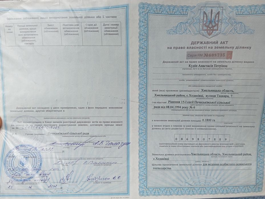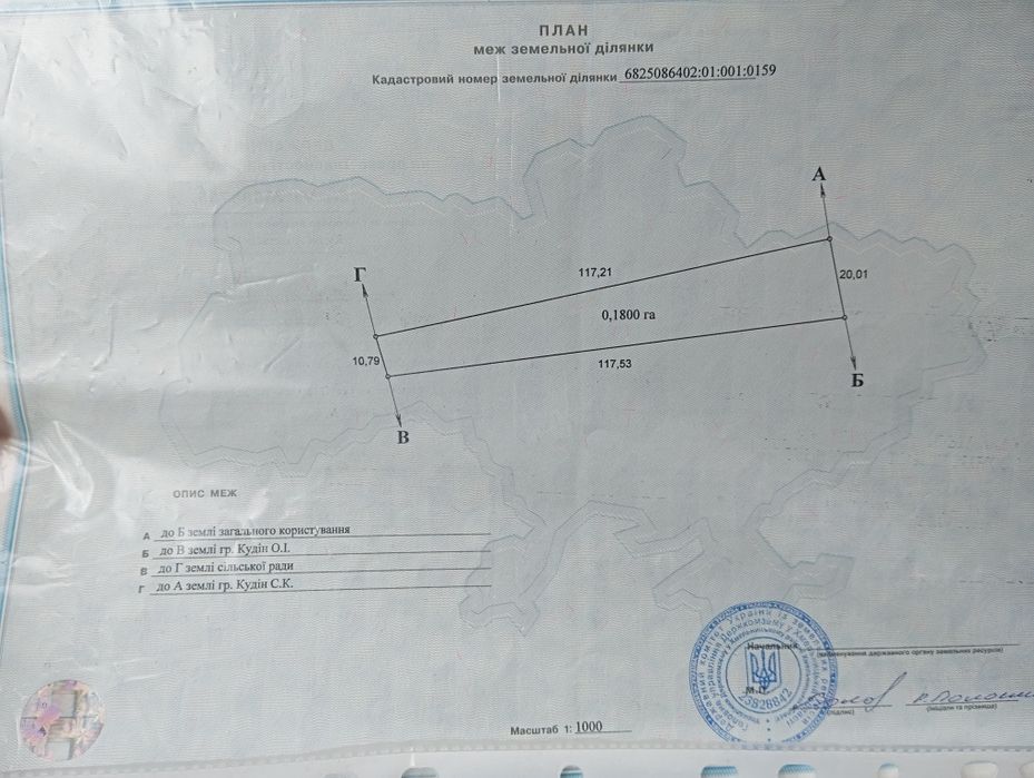| Земельна ділянка: |