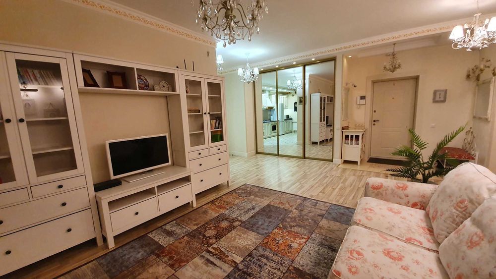 Квартира простора, з якісним ремонтом в стилі "Прованс", повністю мебльована та обладнана всією необхідною технікою (посудомийна машина, кондиціонери 4шт, бойлер, пральна машина, холодильник, варильна поверхня, духова шафа.) В ідеальному стані.