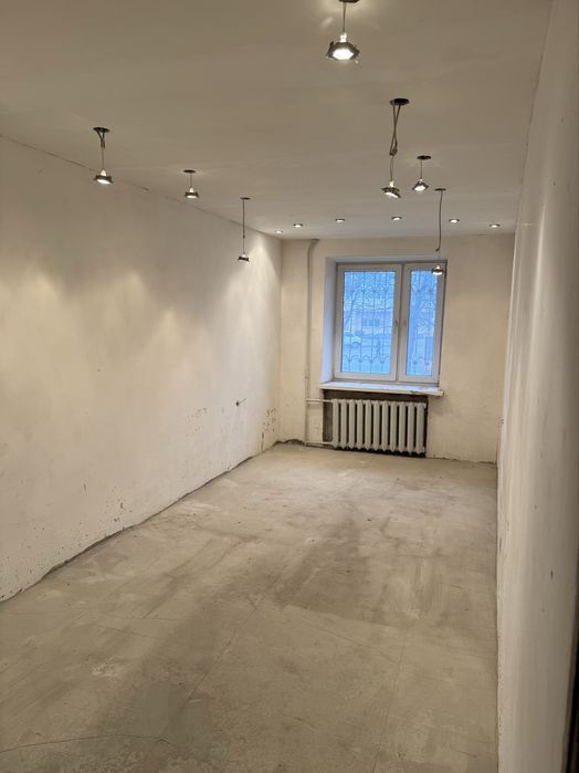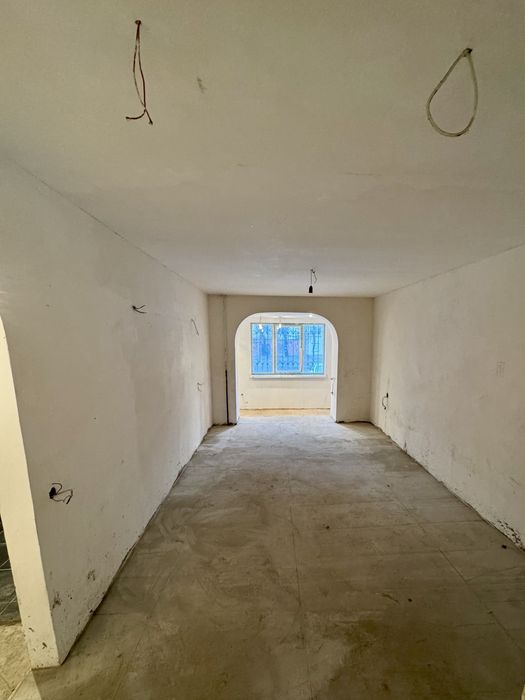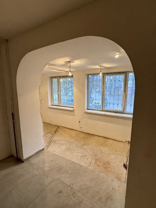 Квартира в стадії ремонту. В кімнатах стіни підготовлені під шпалери або під фарбування. На балконі знаходиться свій власний підвал.