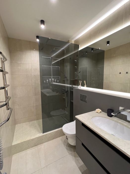 Квартира с дизайнерским ремонтом, новый дом. Счетчики электричества (тариф день/ночь), воды, отопления. Квартира очень тёплая, сильного отопления не требует - полы с подогревом (долго держат температуру, после их отключения), кондиционер до -7 градусов.