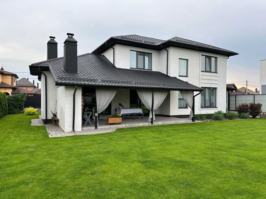 Будинок збудований із газоблоку AEROC товщиною 40 см + армований кожен третій ряд. Утеплення кам'яною ватою 5 см. Криша – якісний італійський метало-профіль, утеплення мін.ватою 30 см. Будинок дуже енергоефективний.