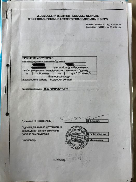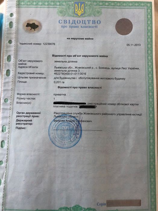 | Земельна ділянка: |