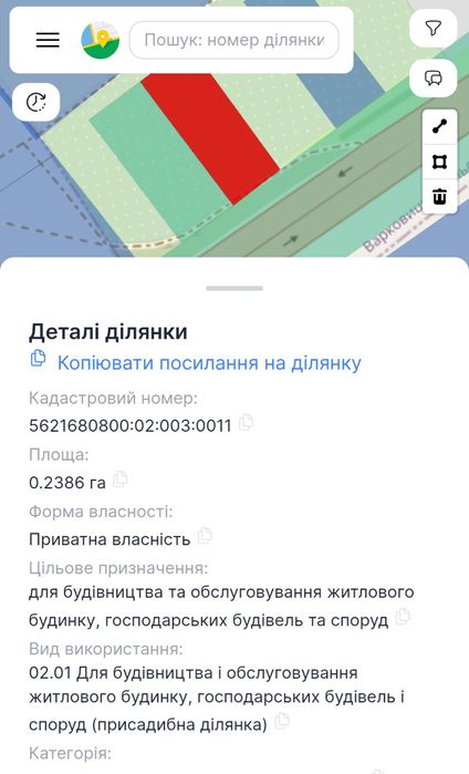 | Земельна ділянка: |