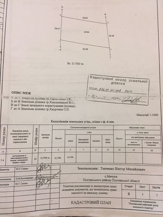 Участок под застройку. Находится в области с. МАЧУХИ; Продам приватизовану земельну ділянку 17 соток під індивідуальну забудову.; кадастровий номер: 53240832:01:003:0134