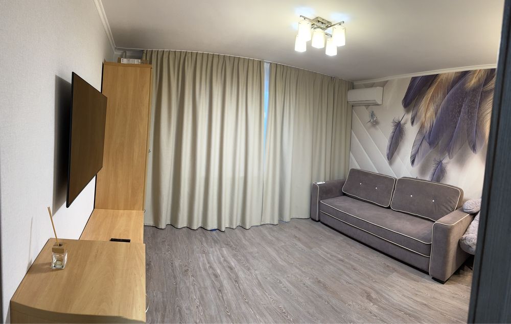Київський; 1-к улучшенная планировка поселок жуковского; Господар .Астрономічна 35-Г.Квартира після повного капітального ремонту!Робили все з нуля,був демонтаж до стану голих стін полу та стелі,залишились тільки несучі стіни.Зроблено перепланування: велика кухня,великий санвузол,зонована кімната на основну і спальну зону,великий балкон.В квартирі все логічно і вседуже зручно,без перебільшень.Нові труби,нова проводка(включно зі вводом в квартиру),гідрошумоізоляція стелі та полу- всі маиеріали якісні,проводка справжнього перерізу (має своі справжні 2.5кв а не номінальні ),пакетники Schneider ,якісні розетки і в зручних містах.Ванна кімната і кухня с підігрівом підлоги.Ламінат один із ведучих виробників ,з натуральнмх матеріалів,плінтуса дерев'яні.Сантехніка гарної якості.Кухня була виготовлена під замовлення ,з дотяжками,дорогую фурнітурою,фасади акріл,вся техніка Bosch(навіть чайник),стіл трансформер ,метал\аллюмиіній \матове скло.Посудомиюча машинка,вбудована микрохвильова піч,фільтр для води,французька штора і т.д.В кімнаті дерев'яні меблі.Телевізор на кухні 24 діагональ ,в кімнаті 55 діагональ -Samsung.Утепення по фасаду (пінопласт 100мм),потрійний склопакет.Встановленні лічильники на воду,охоронна система ,домофон.Будинок з цегли ,яких не багато на районі висотних.