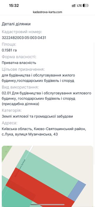 Ділянка під забудову; Фасадна ділянка 15 соток в селі Лука по вул. Музичанська43.Знаходиться між селами Лука та Музичі.