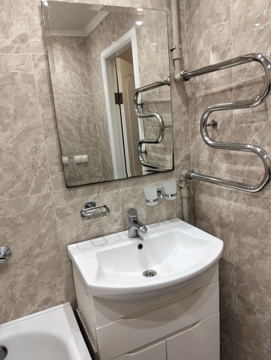 Велика кухня з кондиціонером,також кондиціонер у кімнаті ,сантехніка у гарному стані. Лоджія утеплена,вікна виходять у двір будинку.