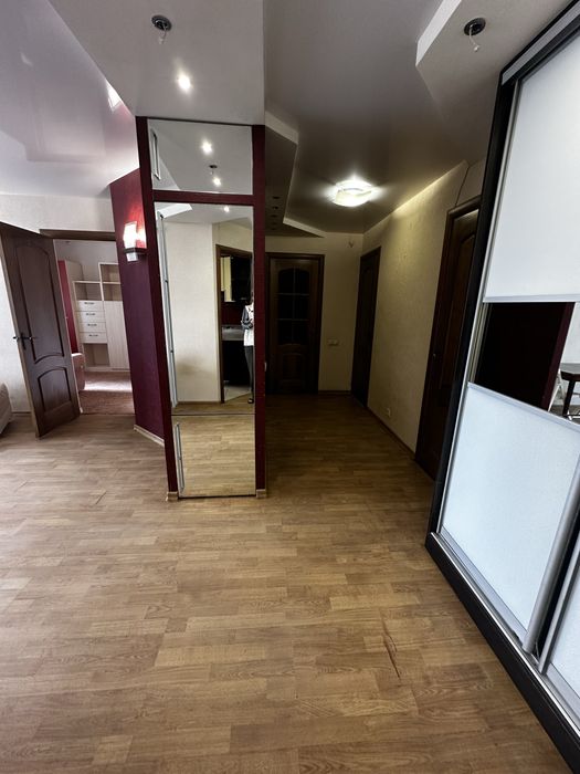 Три ізольовані кімнати, одна кімната обʼєднана з прихожею. Велика гардеробна. В наявності вся побутова техніка (посудоммйка, пралка, великий холодильник). Є бойлер на гарячу воду.