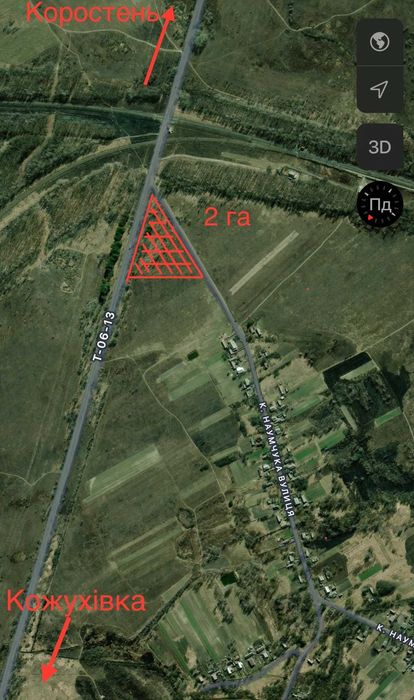Замельна ділянка 2га (осг) з перспективою встановлення енергогенерації; Земельна ділянка площею 2ГА, розташована в с.Жабче, Коростенського району, Житомирської області.