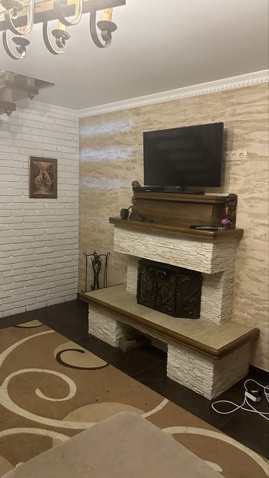 - простору кухню-вітальню з каміном ( також укорлектовані технікою)