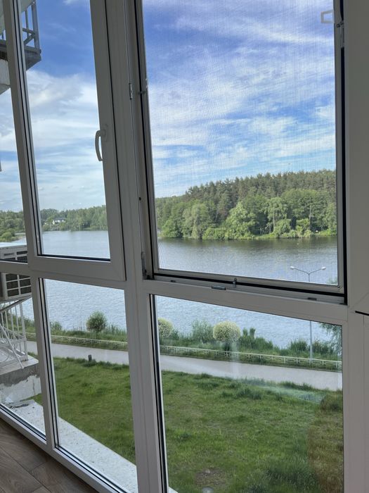 Панорамні вікна з неймовірним видом на ліс та річку.