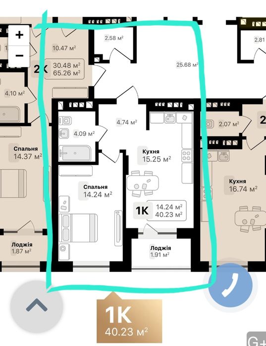 Не апартаменти, а квартира в дев'ятиповерховій 3 секції на 9 поверсі (в цій секції від забудовника були найдорожчі квартири). Дуже гарне планування. Площа 40.23 м +комора 2.58 м в подарунок. Вікна виходять в двір на південну сторону.